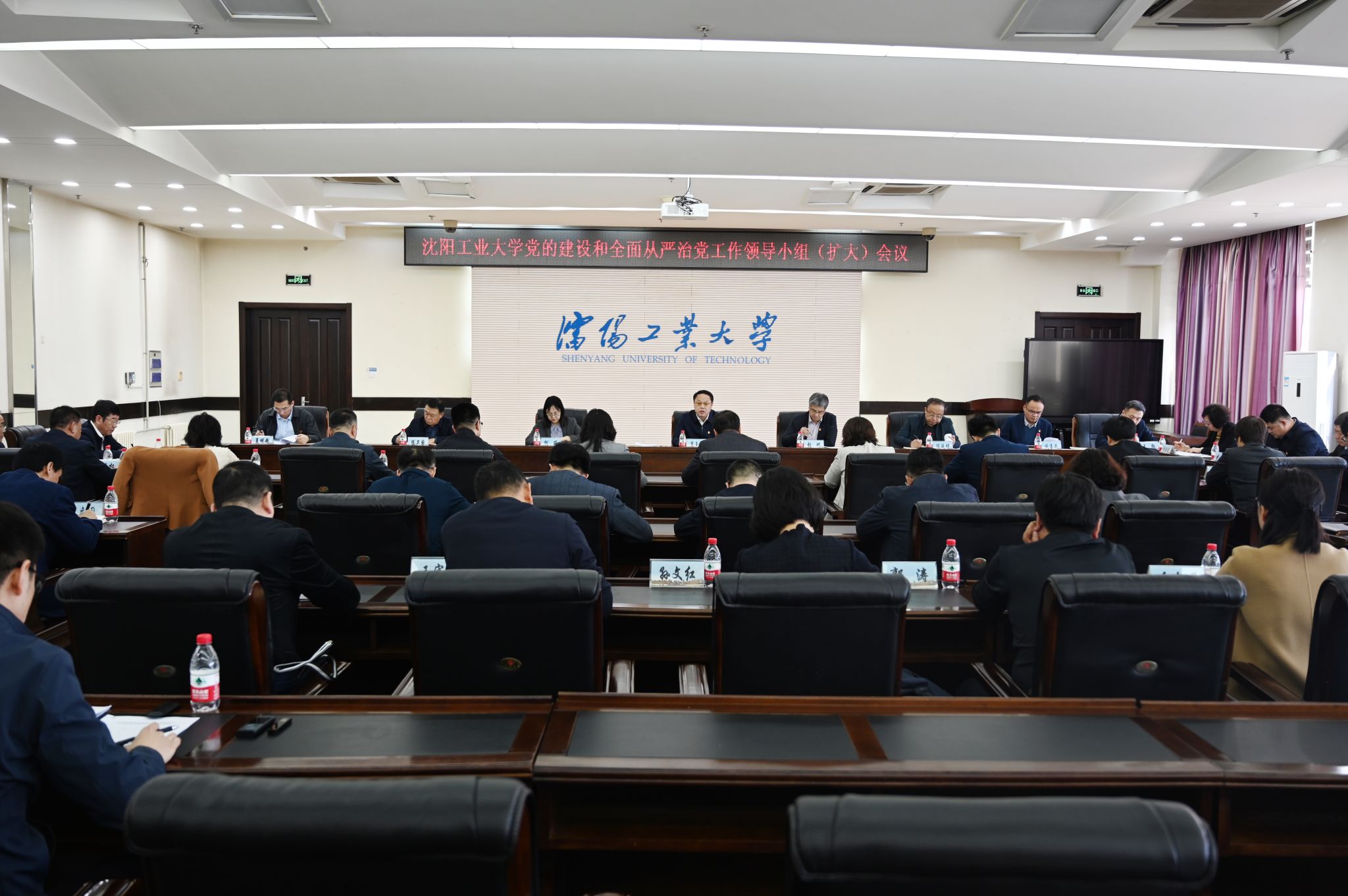 3月21日下午,學校在校部五樓會議室召開黨的建設和全面從嚴治黨工作領導小組(擴大)會議,傳達學習習近平總書記關于深入貫徹中央八項規定精神學習教育的重要講話和重要指示精神,中央黨的建設工作領導小組會議和中共中央辦公廳《關于在全黨開展深入貫徹中央八項規定精神學習教育的通知》精神及省委相關會議精神,研究部署學校深入貫徹中央八項規定精神學習教育工作。黨委書記賈玉明主持會議并講話,學校黨的建設和全面從嚴治黨工作領導小組成員和成員單位負責人,各二級單位黨組織書記參加會議。