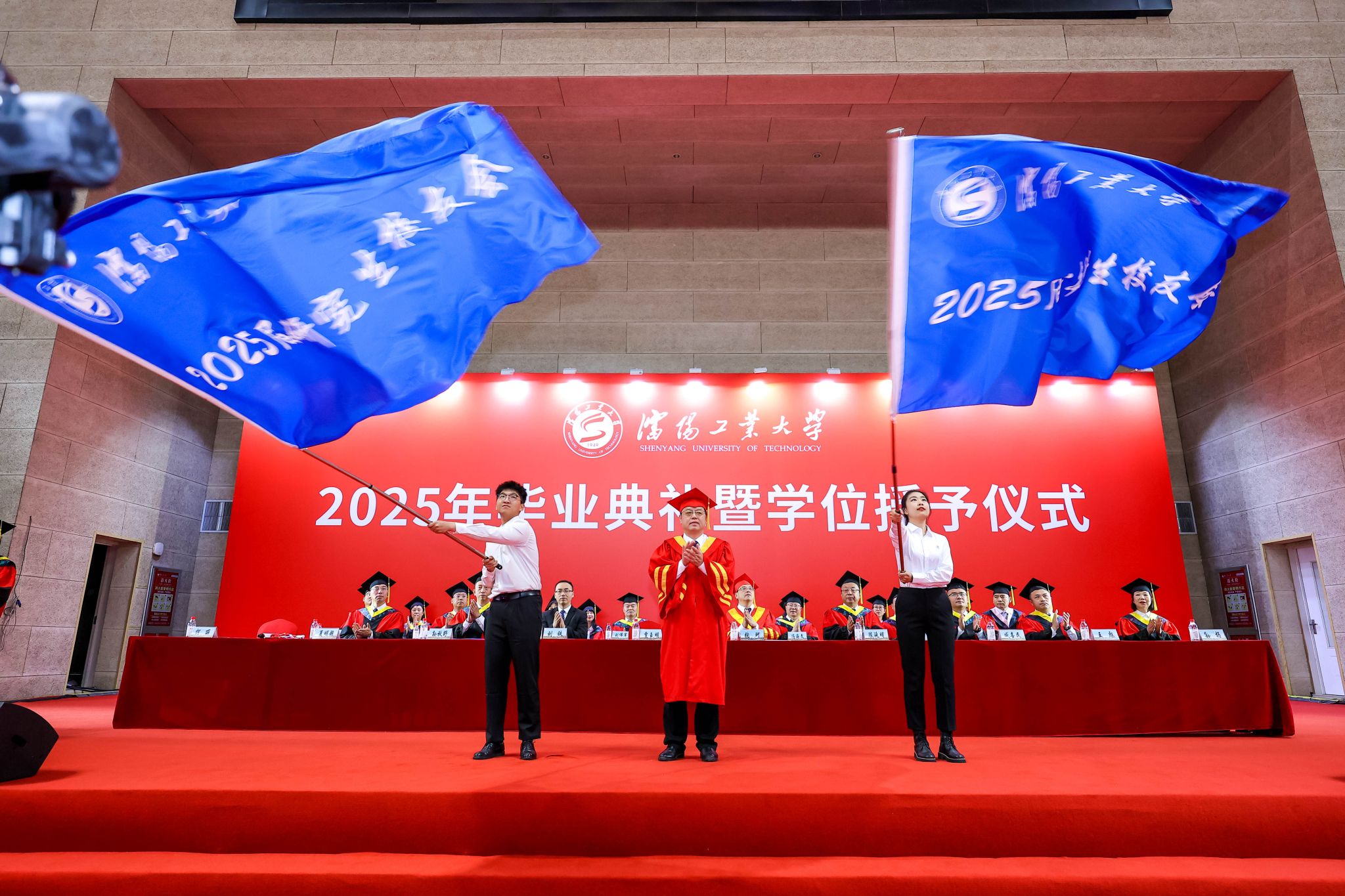 自強擔當鑄未來,篤行致遠啟新程。6月21日上午,沈陽工業大學2025年畢業典禮暨學位授予儀式在中央校區體育館舉行。校黨委書記賈玉明、黨委副書記、校長張珂,黨委常委、副校長陳延明、孫秋野、臧喜民、夏明超、王彪、孫楊,學位評定委員會全體成員、相關職能部門和二級學院負責同志,校友代表、教師代表、家長代表,2025屆全體畢業生和畢業生輔導員共同見證這一莊嚴難忘的時刻。畢業典禮由黨委副書記柯麗主持。