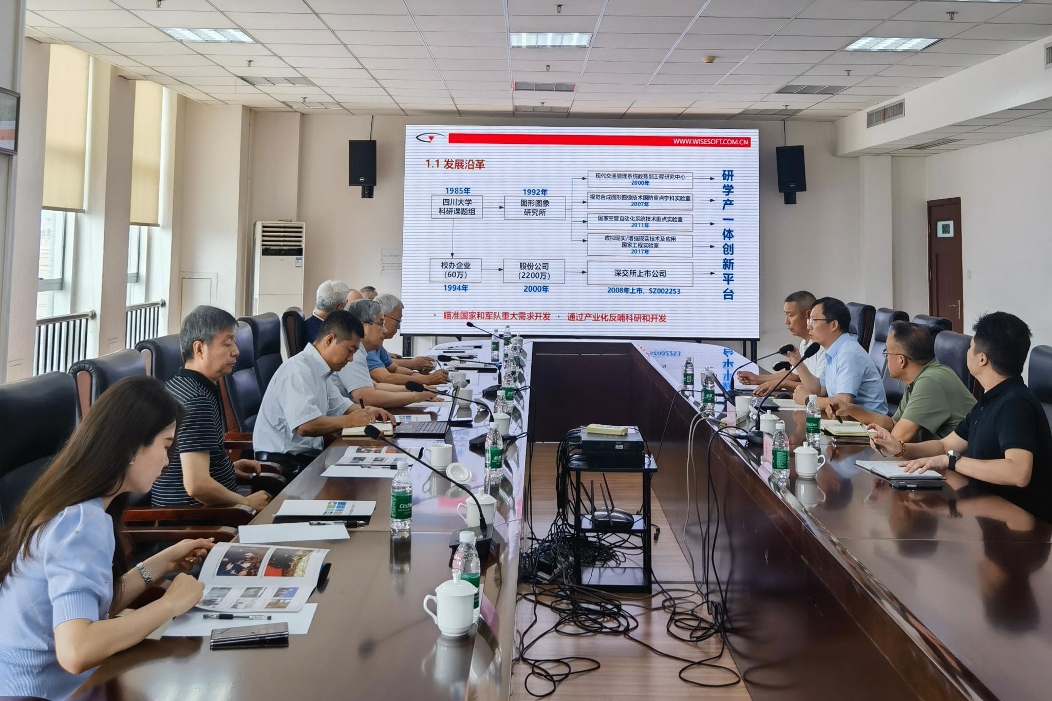 在川大智勝有限公司,總經(jīng)理劉健波、1983級計算機專業(yè)校友、副總經(jīng)理馬灼奎熱情接待了張珂一行,劉健波詳細(xì)介紹公司的發(fā)展歷程,他表示,川大智勝公司作為深交所上市的高新技術(shù)企業(yè),經(jīng)過多年的技術(shù)沉淀,在航空與空管、人工智能、低空經(jīng)濟、VR/AR等領(lǐng)域成果顯著,在空中交通管制系統(tǒng)及三維人臉識別系統(tǒng)方面國內(nèi)領(lǐng)先,今后希望與學(xué)校在人工智能創(chuàng)新領(lǐng)域開展深度合作,共同攻克行業(yè)技術(shù)難題,推動科技成果轉(zhuǎn)化應(yīng)用。