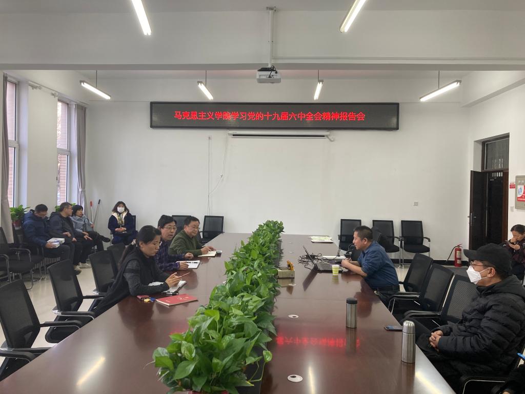 11月24日,馬克思主義學院在文科樓124會議室召開學習黨的十九屆六中全會精神報告會,曹延洶教授作專題輔導報告。學院全體領導班子成員、教師代表等四十余人參加了報告會。