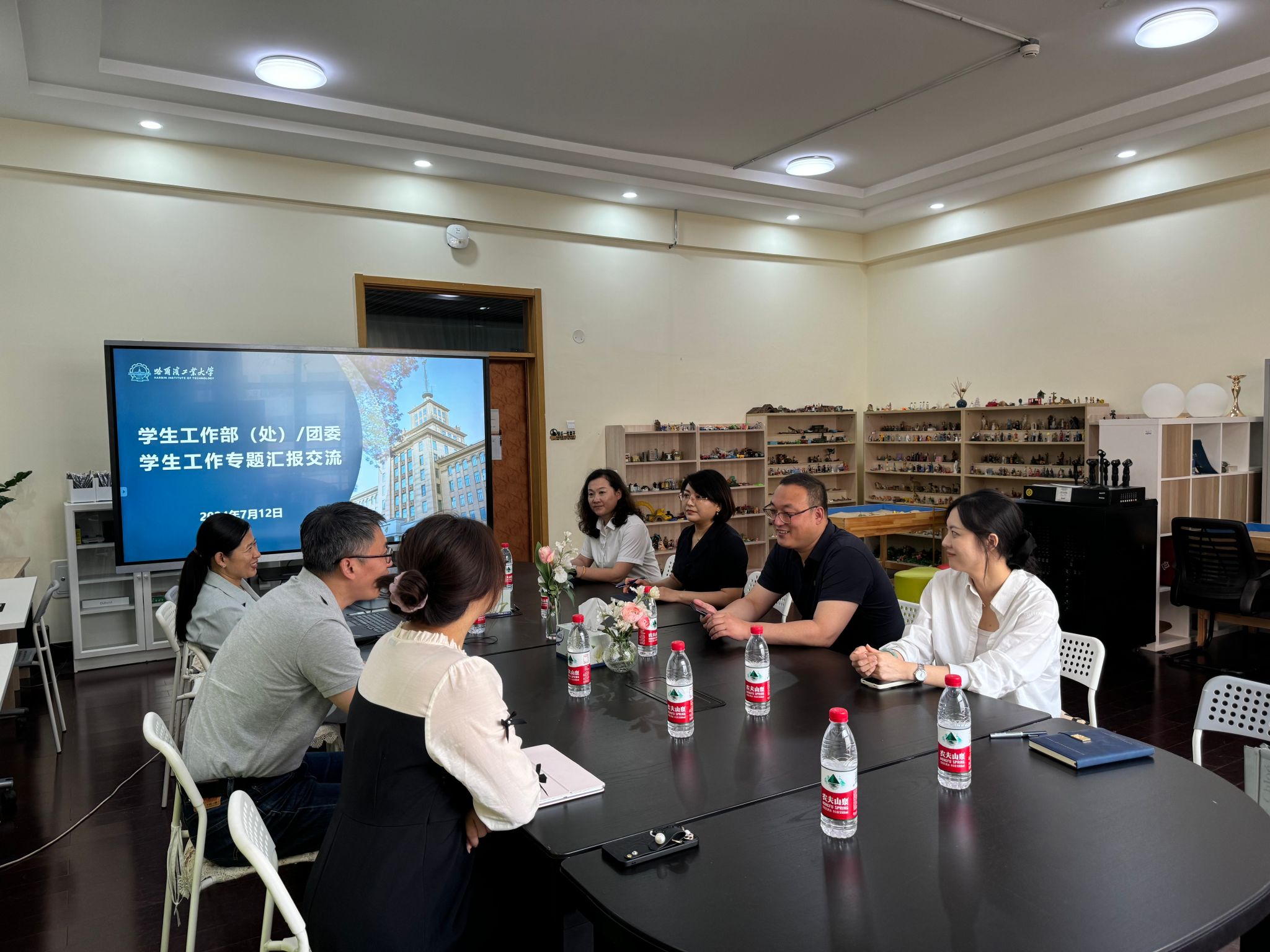 “家訪+交流調(diào)研”走訪模式延續(xù)“創(chuàng)新融合”工作理念。家訪期間,家訪隊(duì)伍還在沈陽(yáng)工業(yè)大學(xué)學(xué)生處處長(zhǎng)兼黨委學(xué)生工作部部長(zhǎng)李青山的帶領(lǐng)下來(lái)到哈爾濱工業(yè)大學(xué)、哈爾濱理工大學(xué)兩所高校進(jìn)行交流調(diào)研。哈爾濱工業(yè)大學(xué)黨委學(xué)生工作部部長(zhǎng)李巖松、副部長(zhǎng)龐東賀,黨委宣傳部副部長(zhǎng)張依等接待了李青山一行,向到訪一行詳細(xì)介紹了哈爾濱工業(yè)大學(xué)大學(xué)生思想政治教育工作體系,重點(diǎn)介紹了思政實(shí)踐課、學(xué)情教育等特色工作的開(kāi)展情況,一行人參觀了哈爾濱工業(yè)大學(xué)航天館,沉浸式學(xué)習(xí)載人航天精神,雙方就加強(qiáng)思想政治工作精品項(xiàng)目等方面的合作交換了意見(jiàn)。哈爾濱理工大學(xué)黨委副書(shū)記趙水杉、黨委學(xué)生工作部部長(zhǎng)戴湘竹、測(cè)控技術(shù)與通信工程學(xué)院黨委書(shū)記黃春麗等接待了李青山一行,并詳細(xì)介紹了哈爾濱理工大學(xué)在學(xué)生工作方面的特色和亮點(diǎn),重點(diǎn)介紹了“三個(gè)聚力”思政體系和資助育人管理模式,一行人參觀了學(xué)校“一站式”社區(qū)建設(shè),雙方就下一步全面加強(qiáng)合作達(dá)成了共識(shí)。