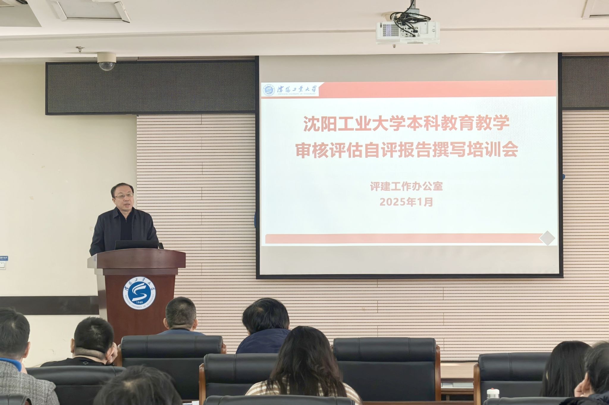 1月3日上午,沈陽工業大學本科教育教學審核評估自評報告撰寫培訓暨審核評估工作推進會在校部五樓會議室召開,黨委常委、副校長陳延明出席會議并講話,教師發展與教育評估中心、自評報告撰寫專項工作組牽頭單位和協同單位、各教學單位負責人及相關人員參加會議。會議由教師發展與教育評估中心主任石印明主持。