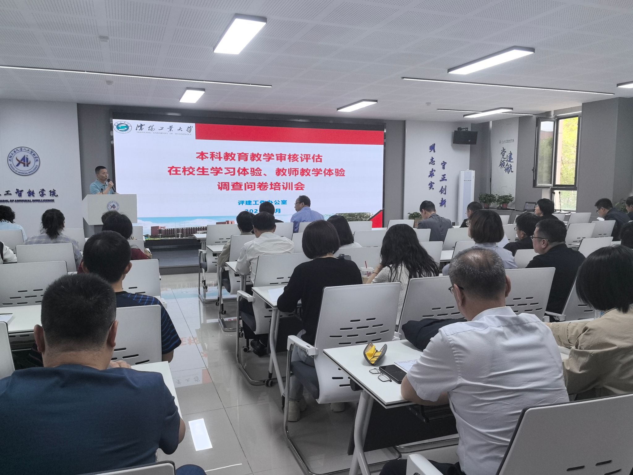 為有序推進本科教育教學審核評估工作,5月20日,學校在啟智樓222會議室召開教師教學體驗報告和學生學習體驗報告調查問卷培訓會。黨委常委、副校長陳延明、校長助理譚晶、各教學單位主管教學工作、學生工作負責人、教師發展與教育評估中心負責人及相關人員參加會議,黨委常委、副校長陳延明出席會議并講話。會議由教師發展與教育評估中心主任石印明主持。