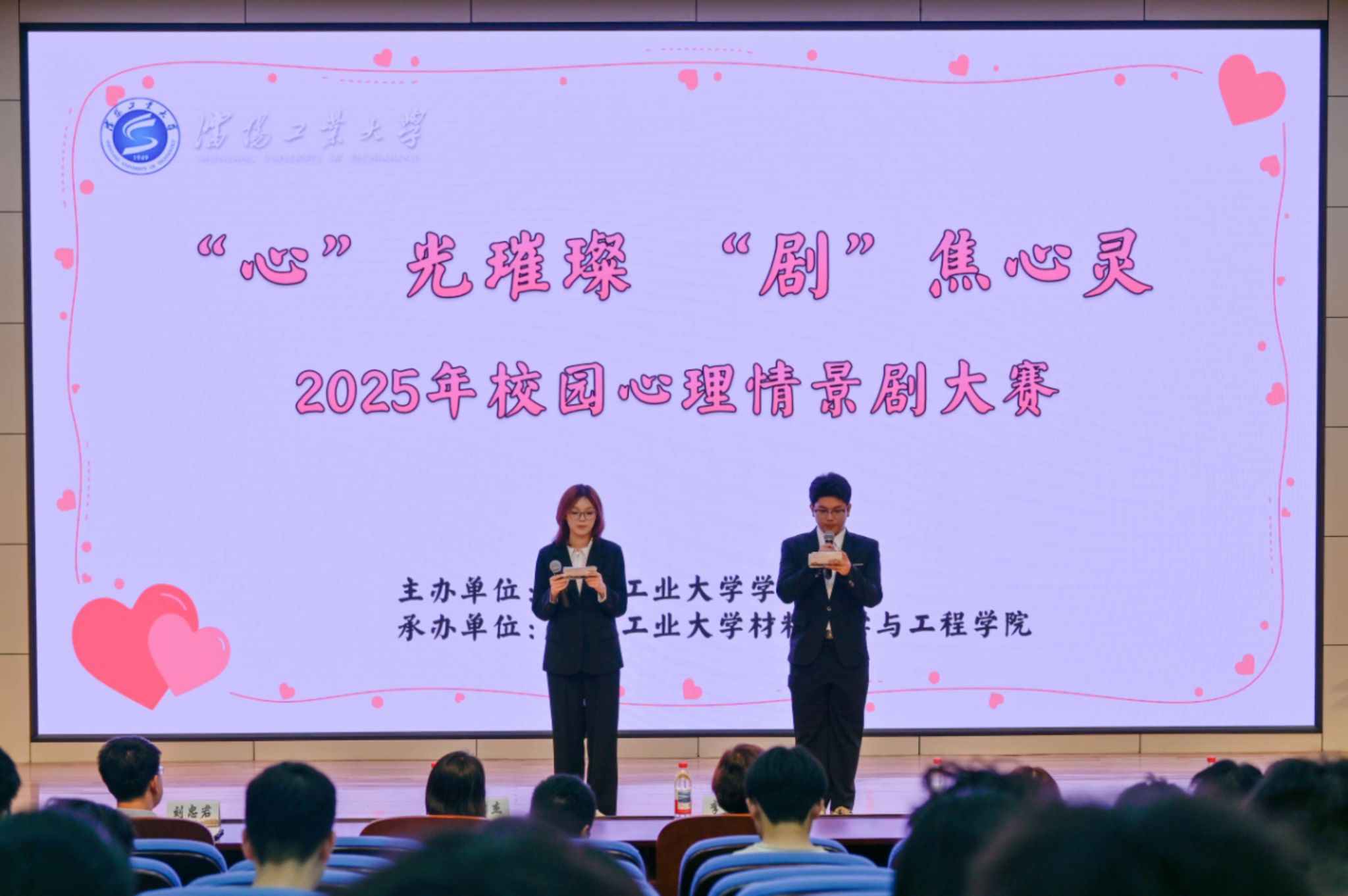 6月6日,由校學(xué)生處主辦,材料科學(xué)與工程學(xué)院承辦的2025年“‘心’光璀璨,‘劇’焦心靈”校園心理情景劇大賽決賽在科學(xué)會(huì)堂隆重舉行。沈陽(yáng)師范大學(xué)團(tuán)委書(shū)記劉君杰,沈陽(yáng)化工大學(xué)心理健康指導(dǎo)中心教授李川,學(xué)校黨委常委、宣傳部部長(zhǎng)李媛媛,后勤集團(tuán)副主任、校醫(yī)院直屬黨支部書(shū)記劉忠君,學(xué)生處心理發(fā)展指導(dǎo)中心主任賈楠擔(dān)任大賽評(píng)委。學(xué)生處副處長(zhǎng)王春艷、全體心理教師及各學(xué)院輔導(dǎo)員代表、學(xué)生代表400余人參加活動(dòng)。