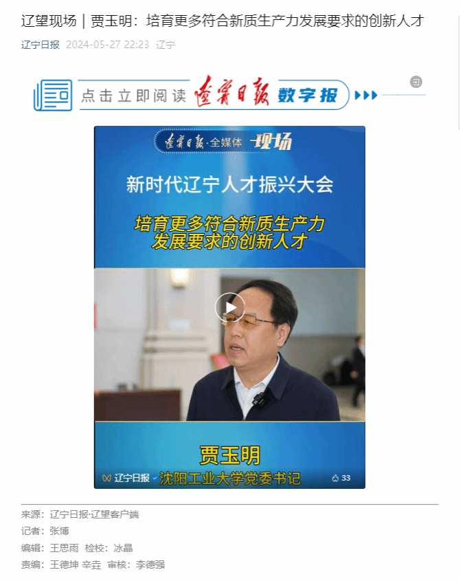 5月27日,新時代遼寧人才振興大會在沈陽召開,我校黨委書記賈玉明參會并在現場接受采訪。