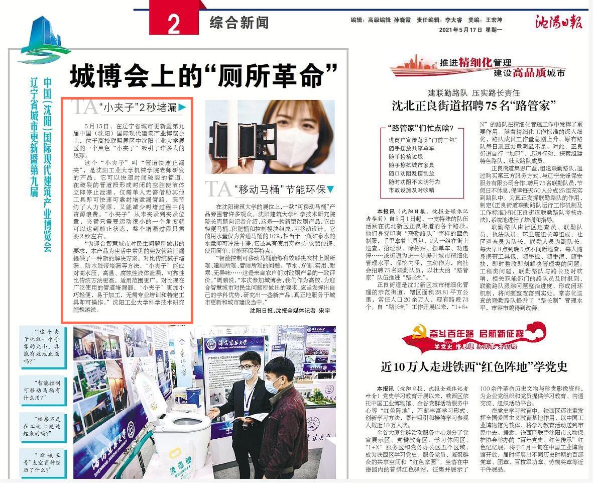 5月17日,沈陽日報報道了我校在遼寧省城市更新暨第九屆中國(沈陽)國際現代建筑產業博覽會上展出的一個黑色“小夾子”,充分展示了我校優秀科技創新成果。