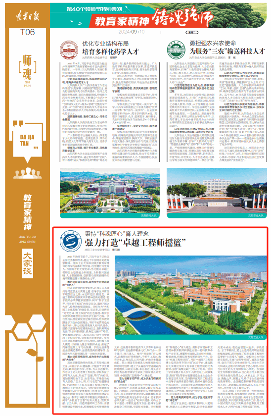 2023年教師節前夕,習近平總書記致信全國優秀教師代表,提出了中國特有的教育家精神。沈陽工業大學深刻領會教育家精神的科學內涵和時代價值,自覺履行為黨育人、為國育才的光榮使命,努力提升卓越工程師自主培養能力和質量,為科教興國戰略、人才強國戰略、創新驅動發展戰略的實施不斷輸送德才兼備的生力軍。