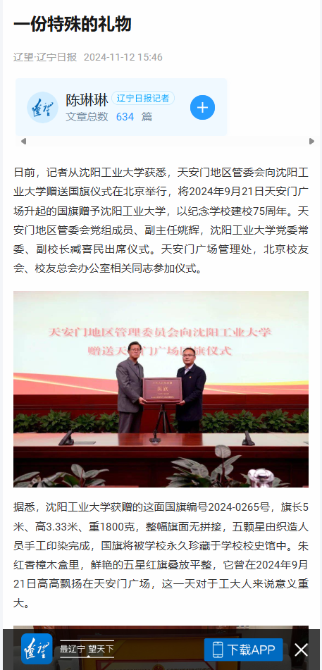 多家媒體對我校于11月8日獲贈2024年9月21日天安門廣場國旗進行追蹤報道。