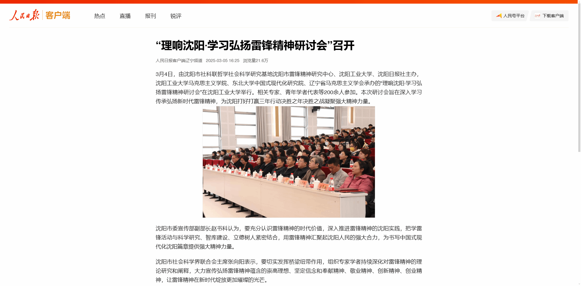 新聞來源:中國日報發布跨版報道《雷鋒精神在遼寧高校綻放》,文章介紹了沈陽工業大學推動雷鋒精神國際化傳播情況。