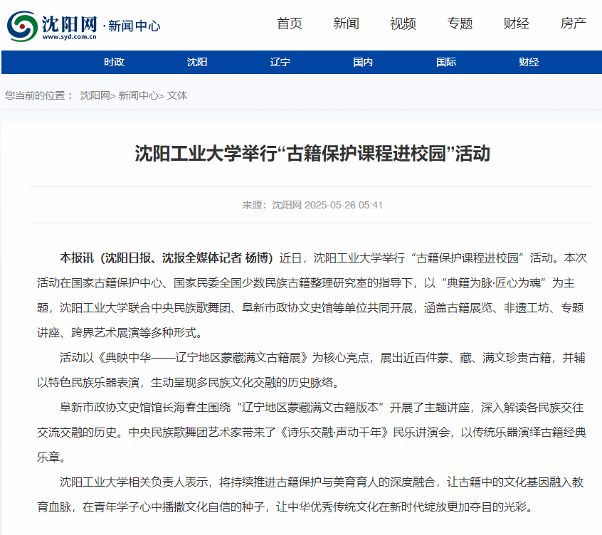 新聞來(lái)源:沈陽(yáng)網(wǎng) 2025年5月26日