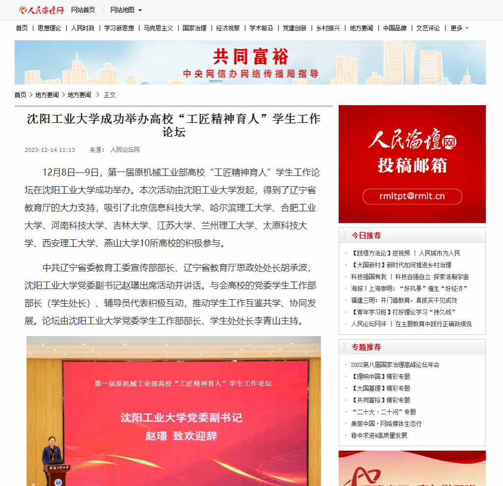 12月8日—9日,第一屆原機(jī)械工業(yè)部高校“工匠精神育人”學(xué)生工作論壇在沈陽(yáng)工業(yè)大學(xué)成功舉辦。本次活動(dòng)由沈陽(yáng)工業(yè)大學(xué)發(fā)起,得到了遼寧省教育廳的大力支持,吸引了北京信息科技大學(xué)、哈爾濱理工大學(xué)、合肥工業(yè)大學(xué)、河南科技大學(xué)、吉林大學(xué)、江蘇大學(xué)、蘭州理工大學(xué)、太原科技大學(xué)、西安理工大學(xué)、燕山大學(xué)10所高校的積極參與。