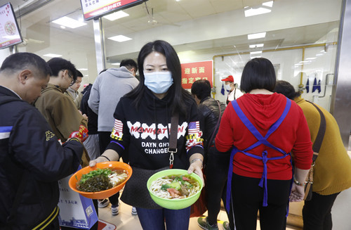 臨近中午,學(xué)校依舊準(zhǔn)備了傳統(tǒng)的迎新家宴“迎新面”,分為炸醬面、肉絲面、牛肉面等多種口味,讓新生嘗到了家的味道,融入了家的氛圍。新生專屬的“迎新面”領(lǐng)取券上寫著的“一碗迎新面工大一家人”,也讓新生倍感親切。