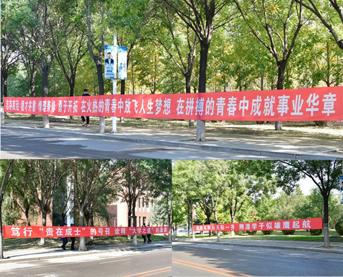 校園內(nèi)迎新氣氛熱情濃烈。寫有“熱烈歡迎2020級(jí)新同學(xué)”的醒目標(biāo)語隨處可見。一踏入校門,入眼的便是標(biāo)有“學(xué)府巍巍 教誨諄諄 育桃李四海”,“問渠清清 書聲瑯瑯 懷壯志凌云”,“為學(xué)成士自強(qiáng)不息 立業(yè)報(bào)國厚德載物”等語句的艷紅拱門。校訓(xùn)石兩旁,立體字標(biāo)語和指示牌一路將新生引導(dǎo)到其對(duì)應(yīng)的報(bào)到處。沿路不時(shí)擺放著一個(gè)個(gè)卡通噴繪,寫著“我拍了拍工大的肩膀說,你好!”“以心迎新 “新”心相印”“加油!新同學(xué)”等萌言萌語,新生們紛紛感慨,自己考進(jìn)了一所又暖又能懂我的大學(xué)。