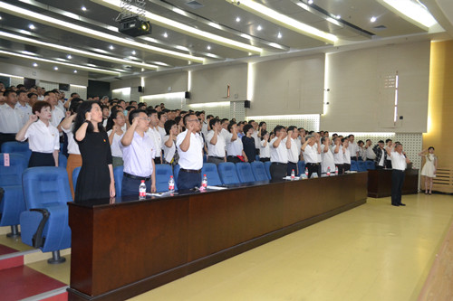 在郭連軍的領(lǐng)誓下,會議舉行了莊嚴(yán)的宣誓儀式。在黨的生日這一天,全體與會黨員鄭重宣讀了入黨誓詞,提醒自己時刻不忘初心、不負(fù)誓言、不畏前行,牢記黨員身份、牢記師生之心、牢記立德樹人,堅(jiān)定信念、強(qiáng)化責(zé)任、創(chuàng)新實(shí)干、擔(dān)當(dāng)奉獻(xiàn)。