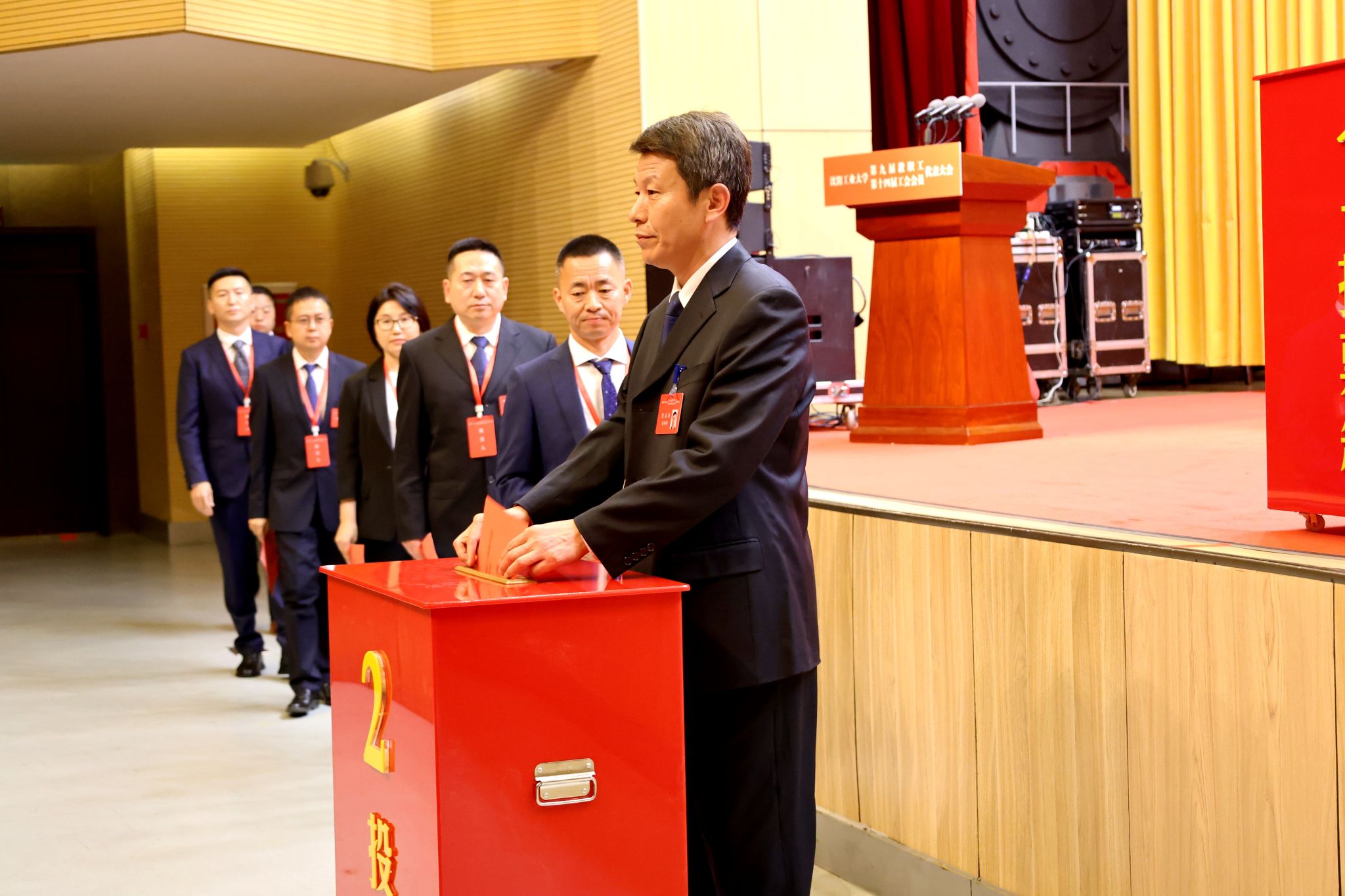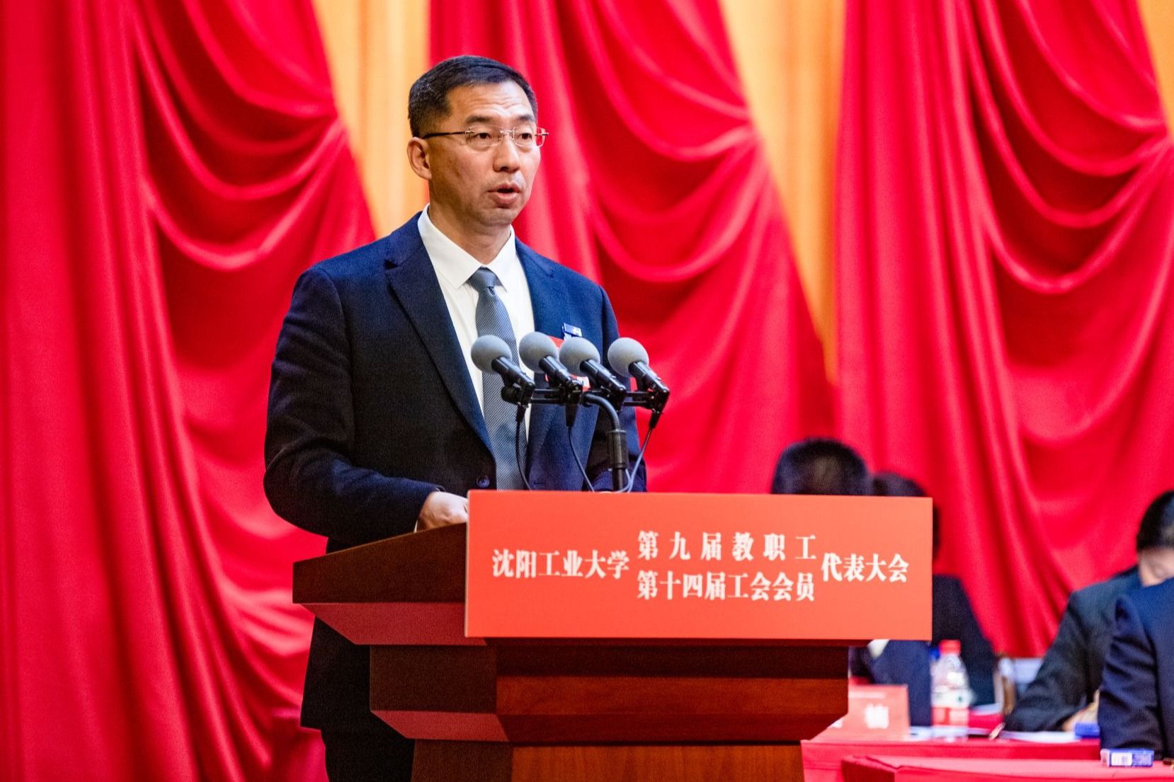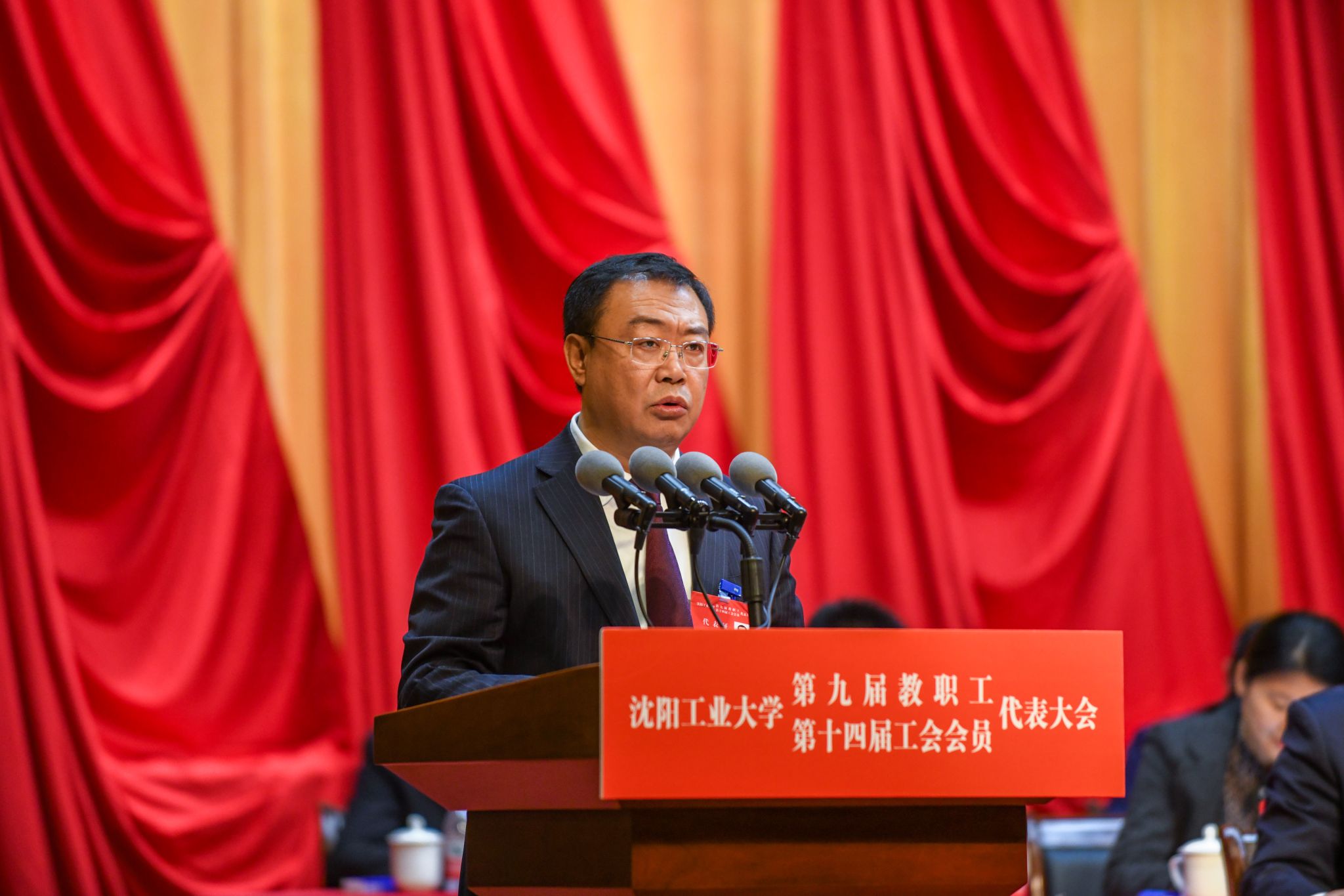 黨委常委、副校長(zhǎng)夏明超同志宣讀大會(huì)關(guān)于《沈陽(yáng)工業(yè)大學(xué)教職工代表大會(huì)章程(修訂稿)》《沈陽(yáng)工業(yè)大學(xué)工會(huì)經(jīng)費(fèi)收支管理辦法》的決議草案