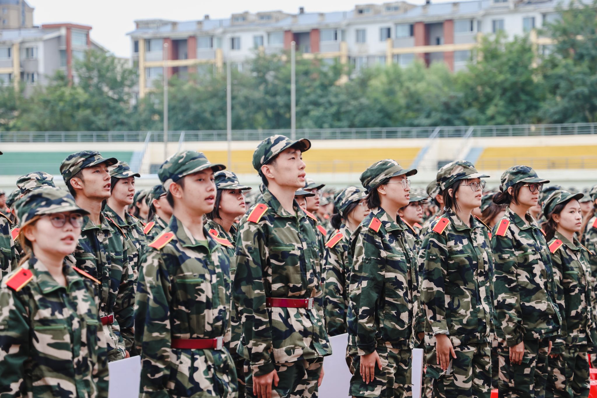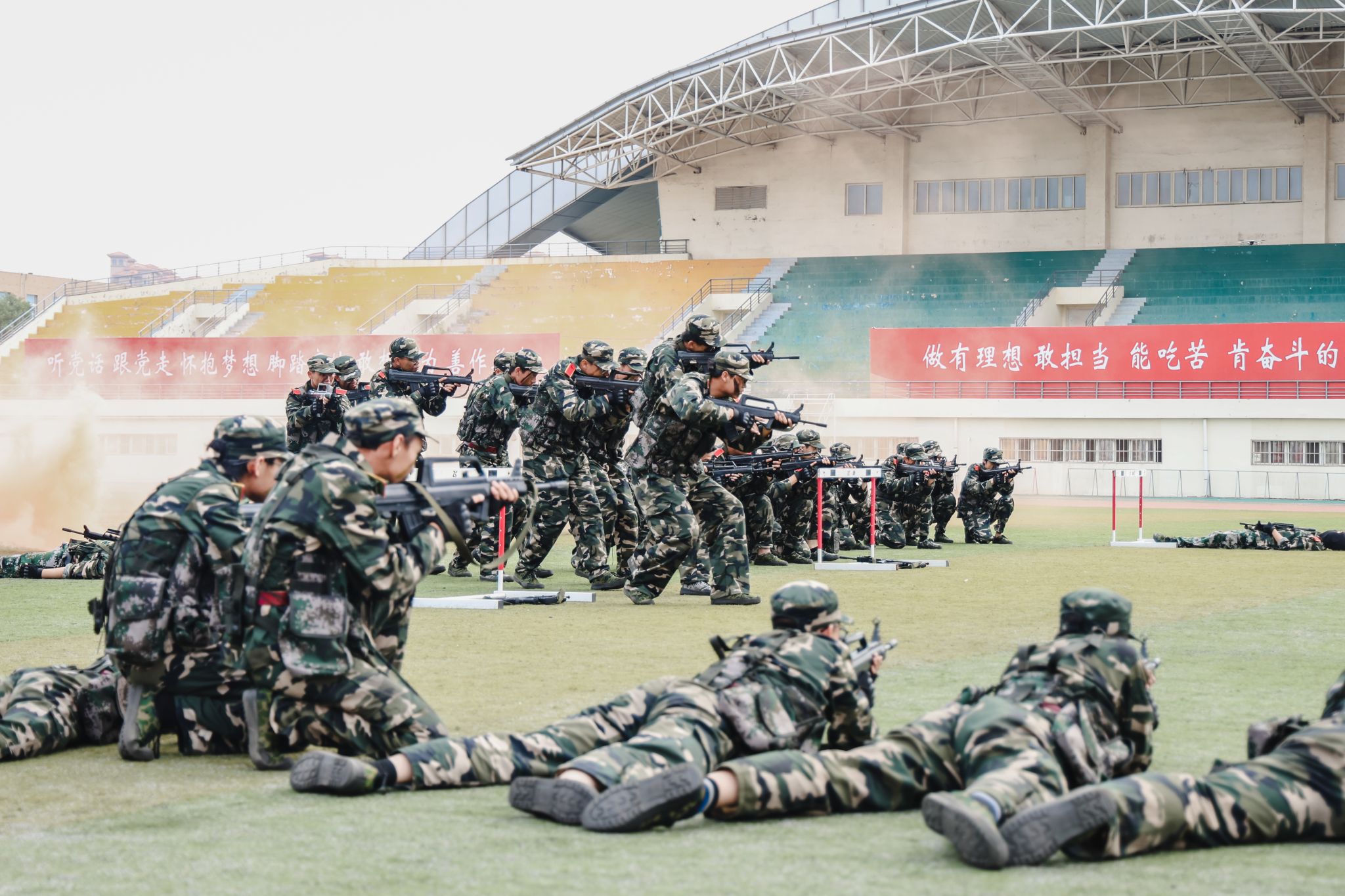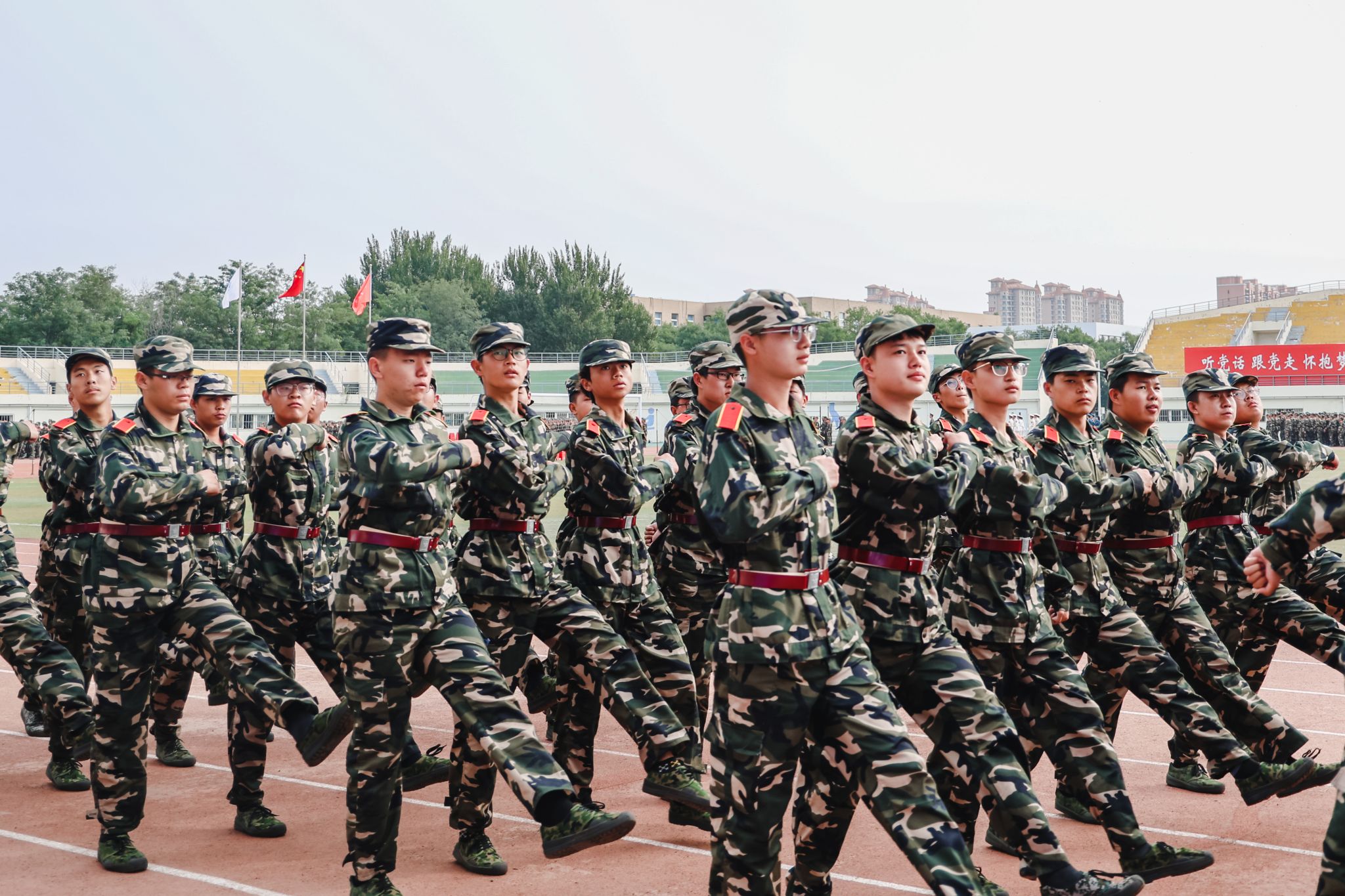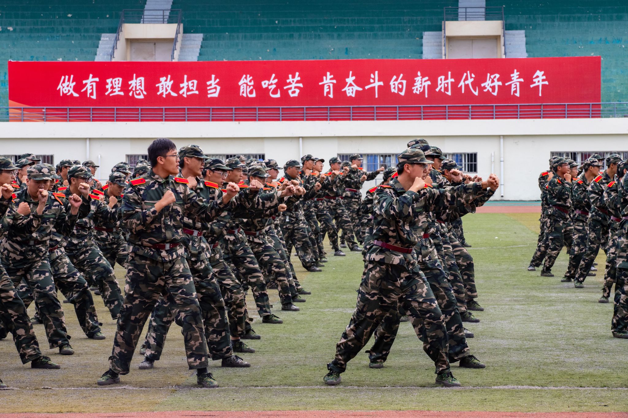 兩千多名參訓學員進行了刺殺操、擒敵拳、應急棍、匕首操、軍體拳、擒拿格斗、戰術、愛國愛校操等軍訓科目表演。他們精神抖擻,英姿勃發,一招一式動作果斷、步調一致,充分展現了入學以來的訓練成果和青春朝氣,不時贏得現場師生的陣陣掌聲。