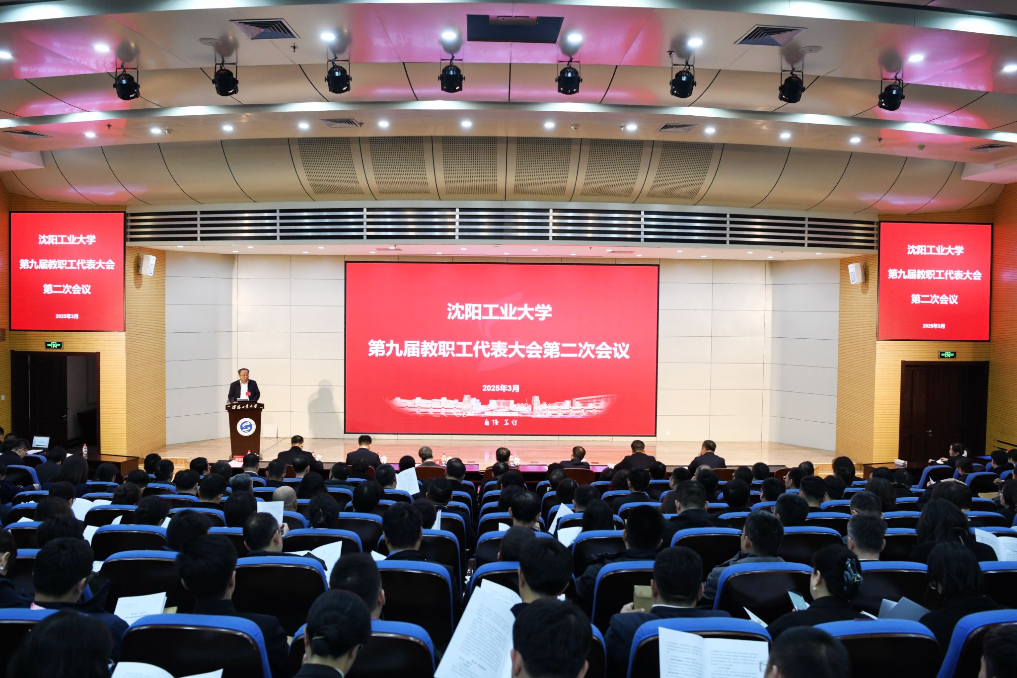 3月28日下午,沈陽工業大學第九屆教職工代表大會第二次會議在中央校區科學會堂召開,校領導賈玉明、張珂、陳延明、陳衛國、孫秋野、臧喜民、夏明超、王彪出席會議。教代會代表、非教代會代表的中層以上干部共210余人參加會議。會議由黨委常委、副校長陳延明主持。