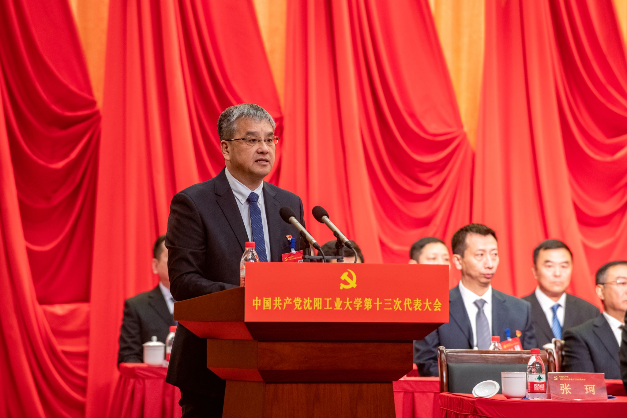黨委書記賈玉明代表學校第十二屆委員會向大會作了題為《矢志科教報國 投身遼沈振興 以高質量發展開創國內一流大學建設新局面》的工作報告。報告共分為四個部分:第十二次黨代會以來的工作;新征程學校建設發展的戰略部署;未來五年重點任務;堅定不移推進新時代黨的建設。