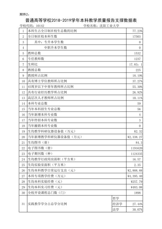 沈陽工業大學2018-2019學年本科教學質量報告