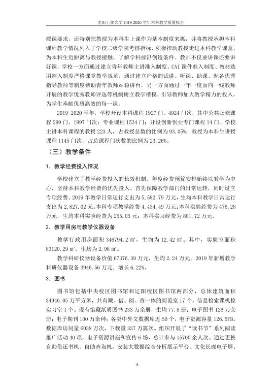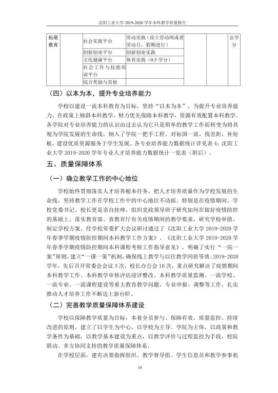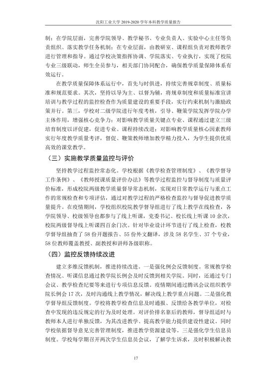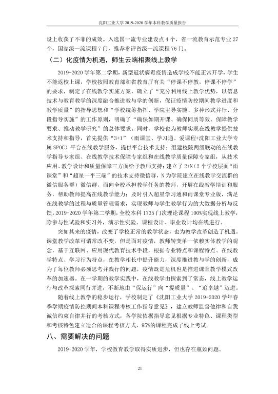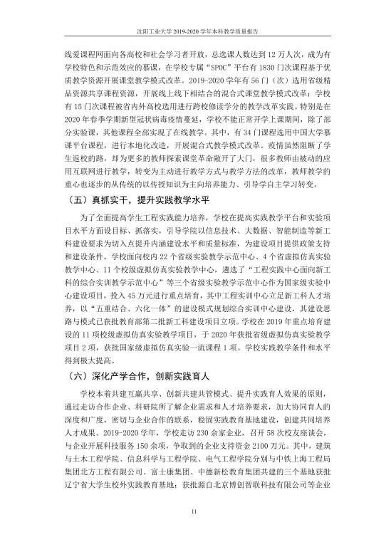 沈陽工業(yè)大學(xué)2019-2020學(xué)年本科教學(xué)質(zhì)量報告