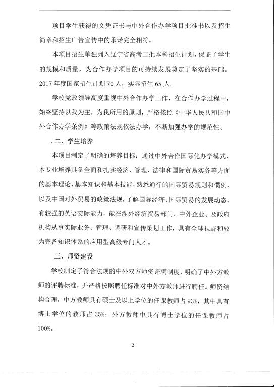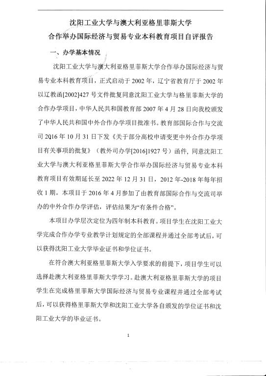 沈陽工業大學與澳大利亞格里菲斯大學合作舉辦國際經濟與貿易專業本科教育項目2017年度自評報告